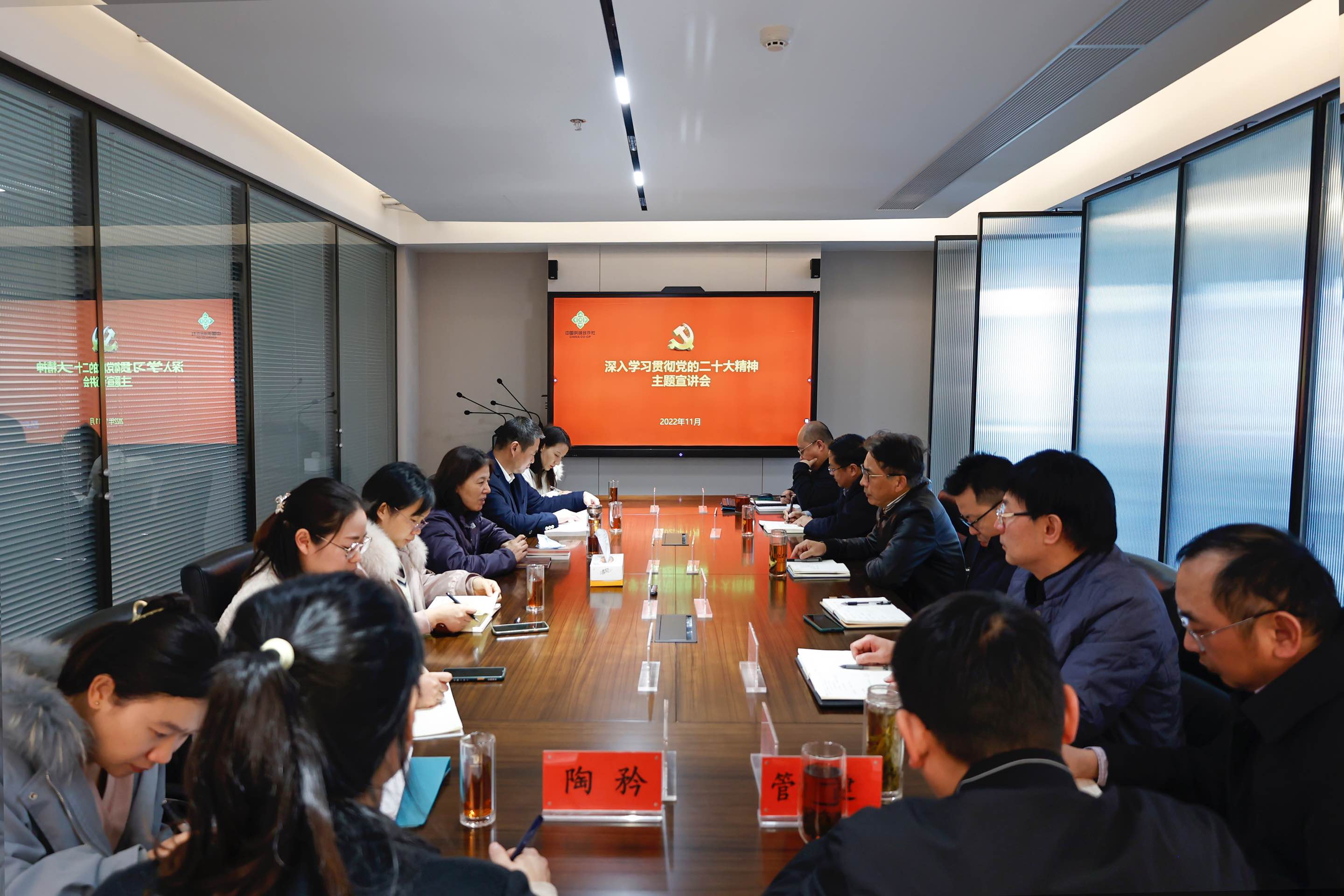 11月30日,省供销社党组成员、理事会副主任杜爱玉赴安徽省茶业集团宣讲党的二十大精神并开展专题调研。省供销社合作经济指导处负责人陪同,茶业集团中层以上人员参加会议。
