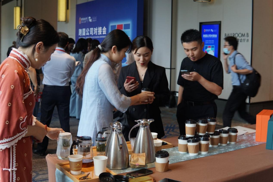 作为东道主,安徽的名优茶品在待客上更是不可或缺。此次安徽省茶业集团助力对接会,展位设在会议厅主过道一侧,整体设计精致美观,典雅大气,为参会嘉宾提供温馨的品茗服务,竖立了良好的品牌形象。